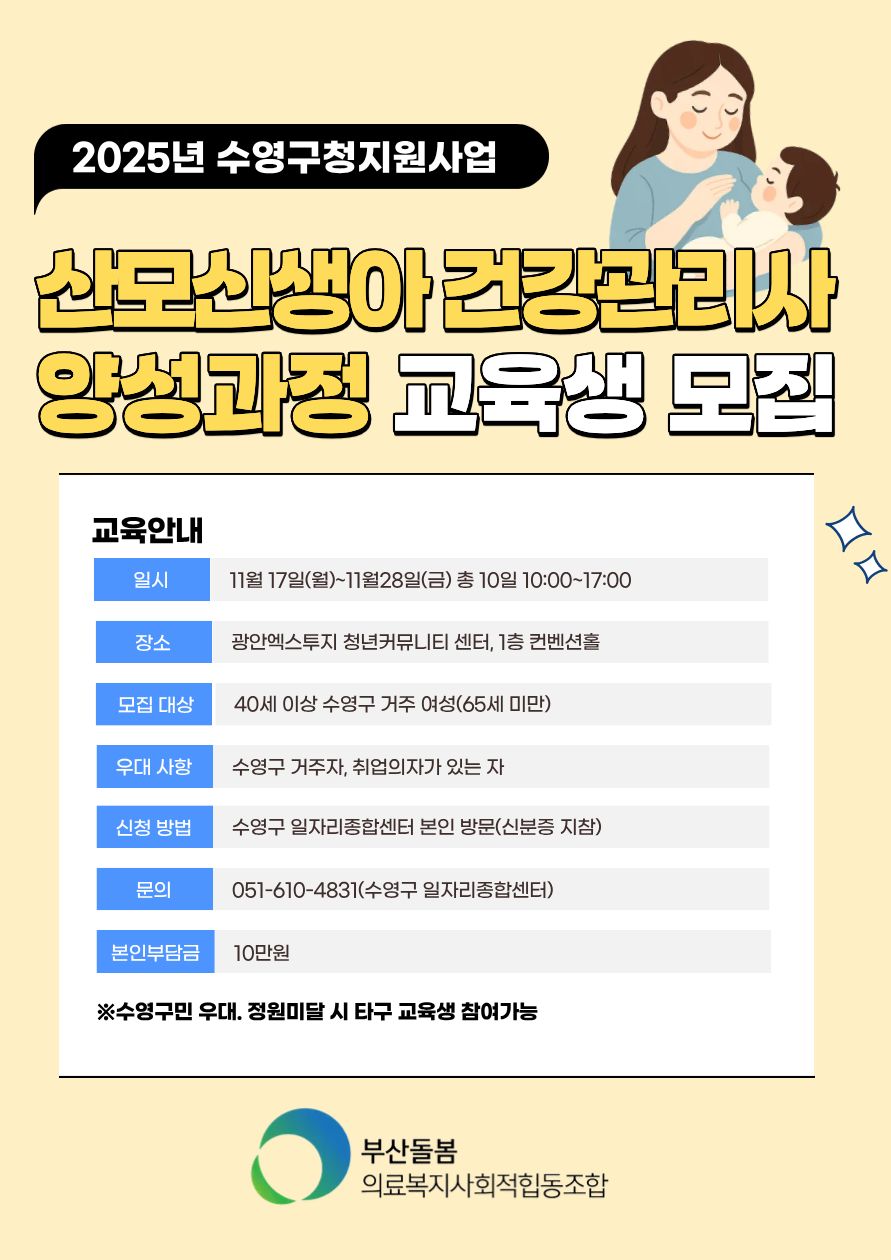 🍼 2025년 산모신생아 건강관리사 양성과정 교육생 모집 🍼